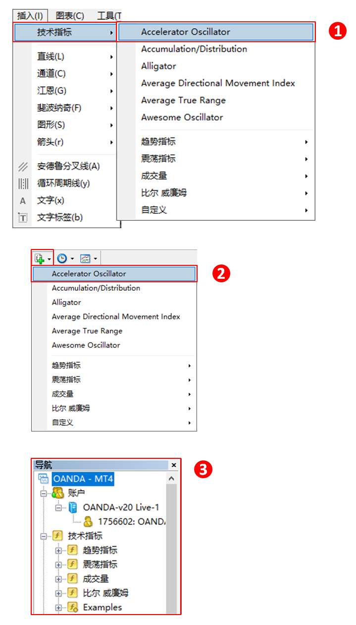 2:点击[菜单栏]的[图表]内的[正显示的指标]