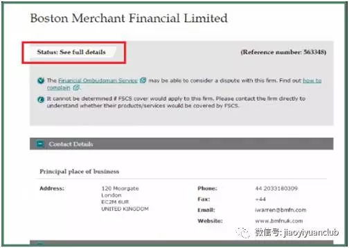 第二种:See fulldetails(白标)。符合英国的监管,但在英国没有办公室或分公司。大多是发给一些白标。大型经纪商的白标也会只是这种牌照,因为要拿到Able to hold client money的牌照成本非常高,对于白标来说是没有必要的。在Status栏上显示“See full details”,这一种和第一种通常来说都是unable to hold client money,也就是没有资质持有客户资金。白标的牌照在FCA的监管信息中明确提到不能获取FSCS补偿。