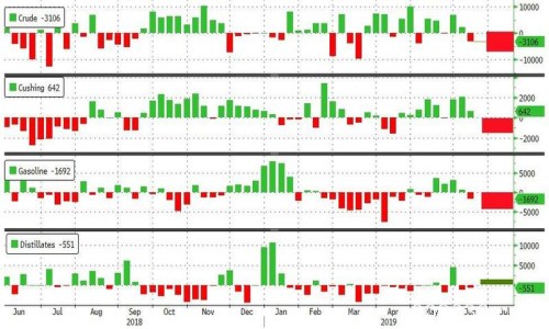 API数据公布后,美、布两油盘后短线走高。知名金融博客Zerohedge点评称,自上周数据以来,油价处于相对高位,主要因霍尔木兹海峡形势问题。但当前贸易形势和全球经济前景对需求的影响仍会限制油价的持续涨势。本周原油库存大降755万桶,为3月以来最大降幅,汽油库存也录得大幅下降。