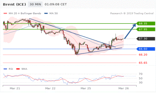 交易策略: 在 66.60 之上,看涨,目标价位为 67.95 ,然后为 68.35 。