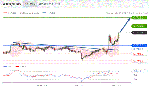 交易策略: 在 0.7110 之上,看涨,目标价位为 0.7180 ,然后为 0.7210 。