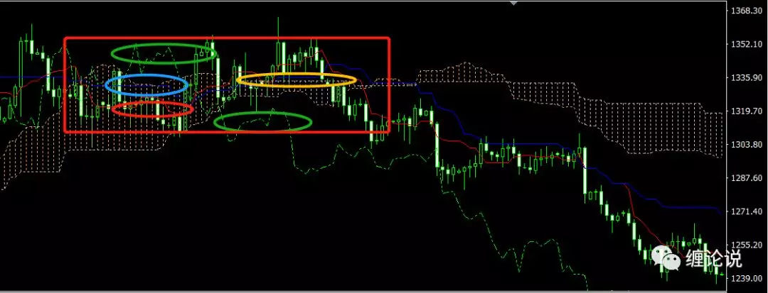 如果价格在云的内部走动,Tenkan-sen(转换线)也是横着走的,震荡行情。