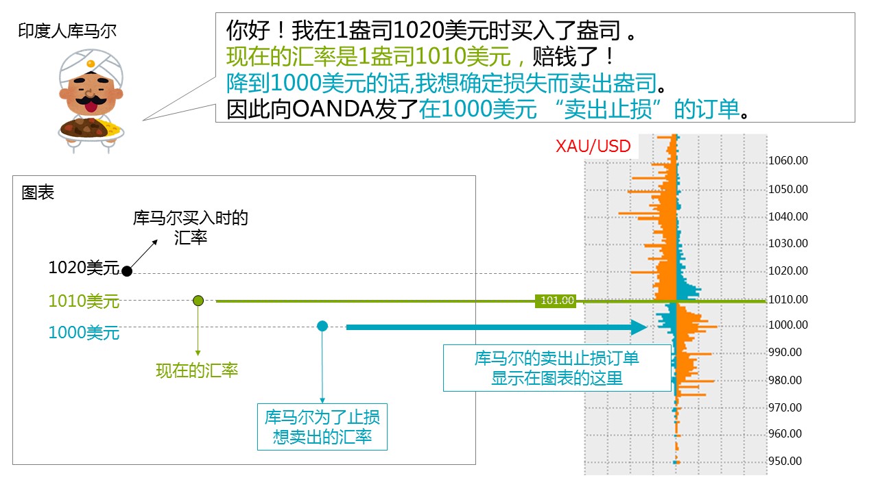 于是库马尔向OANDA 发出了“达到1000美元就卖出黄金”的卖出止损订单。