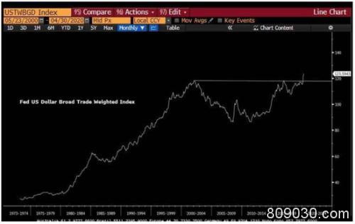 不过与历史不同的是,美元相对于其他货币依然保持坚挺。目前,全球有80%的贸易往来用美元结算,85%的非本国债务依美元计价(约100万亿美元)。 随着全球经济衰退正逐渐演变为一场全球偿付能力事件,美元相对于世界其他地区仍继续保持高位而后者正竞相降低利率以使本国货币兑美元贬值。