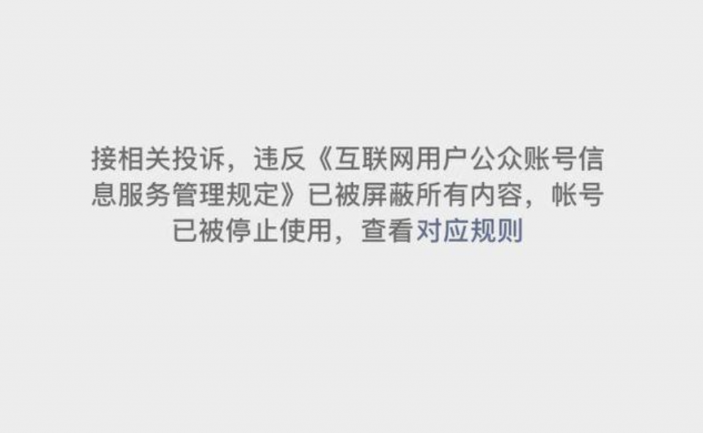 近日发现“一起拍电影”、“三文娱”、“数娱梦工厂”等多个文娱内容类微信公众号被封。相关页面显示“接相关投诉,违反《互联网用户公众账号信息服务管理规定》已被屏蔽所有内容,账号已被停止使用。”