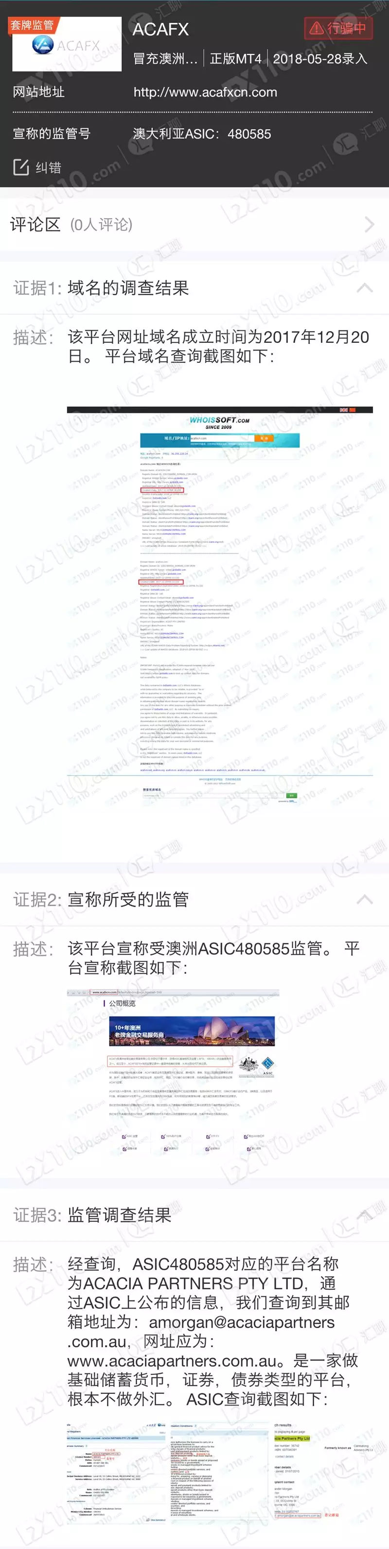 查询结果表明,ACA FX是虚假宣传澳洲ASIC监管,实际上无监管的外汇黑平台。