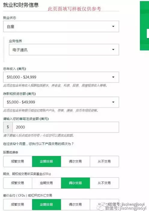 若不会填写申请表格,可以回复【开户】【嘉盛】,【步骤】等关键字,会自动回复相关文章教您如何填写,然后电脑打开链接对照范本填写。(提示:请务必你提前准备sfz高清晰拍照,以便后期上传)