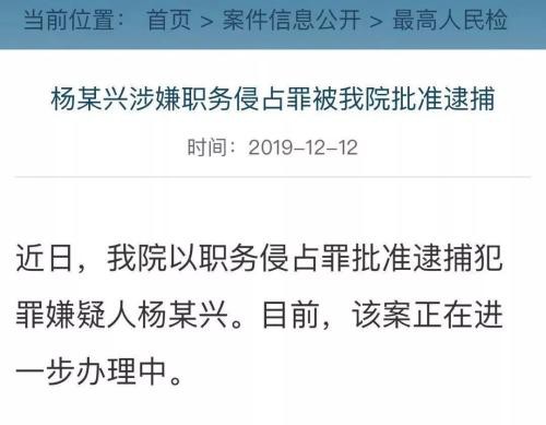 此次杨作兴被批捕的具体原因,仍有待官方进一步披露。