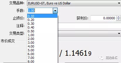 如图所示,在1.1453买进一手欧元兑美元,占用保证金是5726。