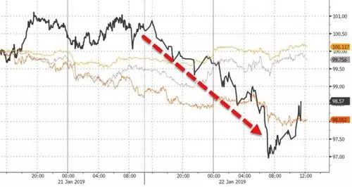 其中,衡量美元兑G10货币表现的彭博美元即期汇率指数基本持平,报1,191.9