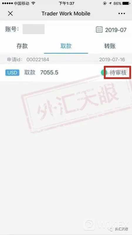 7月16日,聂女士在平台提交了一笔7055.5美金的出金申请,然而在出金申请提交数日后,都迟迟未能通过审核。