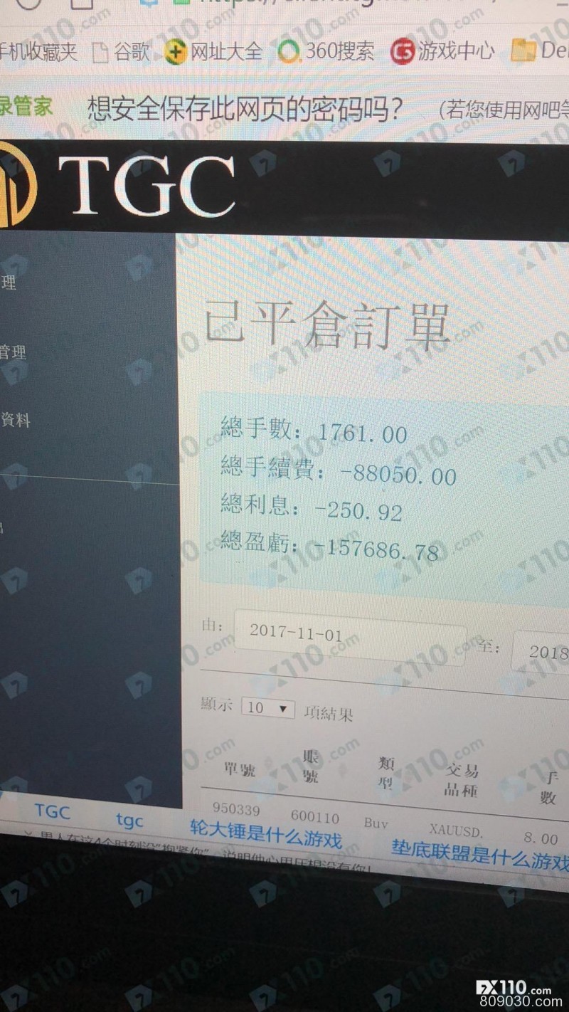 本人2017年11月被忽悠到TGC平台开户,当时选手搞了一个水晶杯争霸比赛,选手4进3,开始讲的是股票,后来说股票大盘不好,转入外汇市场,可以买涨买跌。就这样被忽悠开户,亏损严重,高达15万多美金。希望相关部门能帮我追回我的损失。