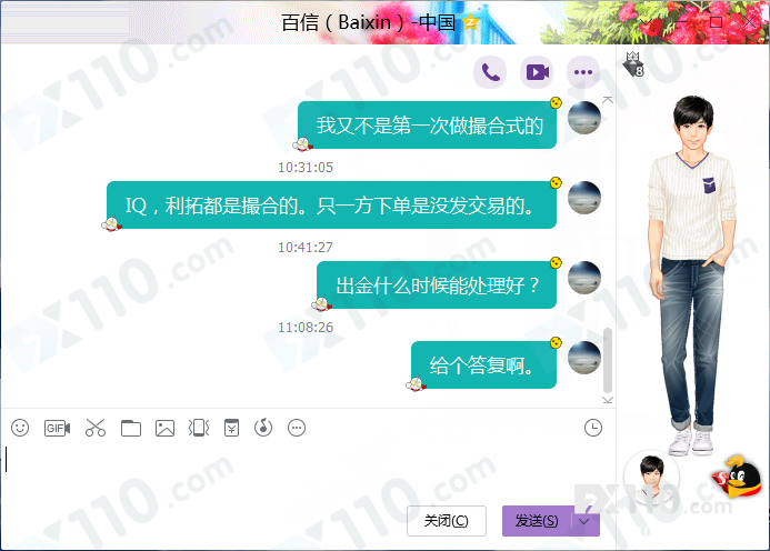 百信短线外汇平台宣称我是新闻单违规,不给出金 伦金 • 2019年11月20日 05:27 • 外汇曝光 • 阅读 984 百信平台网址:http://www.baixinfx.com,http://baixinfx.com诈骗平台。不给出金,虚假监管,虚假宣传撮合交易。 百信平台网址:http://www.baixinfx.com,http://baixinfx.com 诈骗平台。不给出金,虚假监管,虚假宣传撮合交易。 文章作者:伦金,如若转载,请注明出处:http://www.809030.com/eye/37245.html
