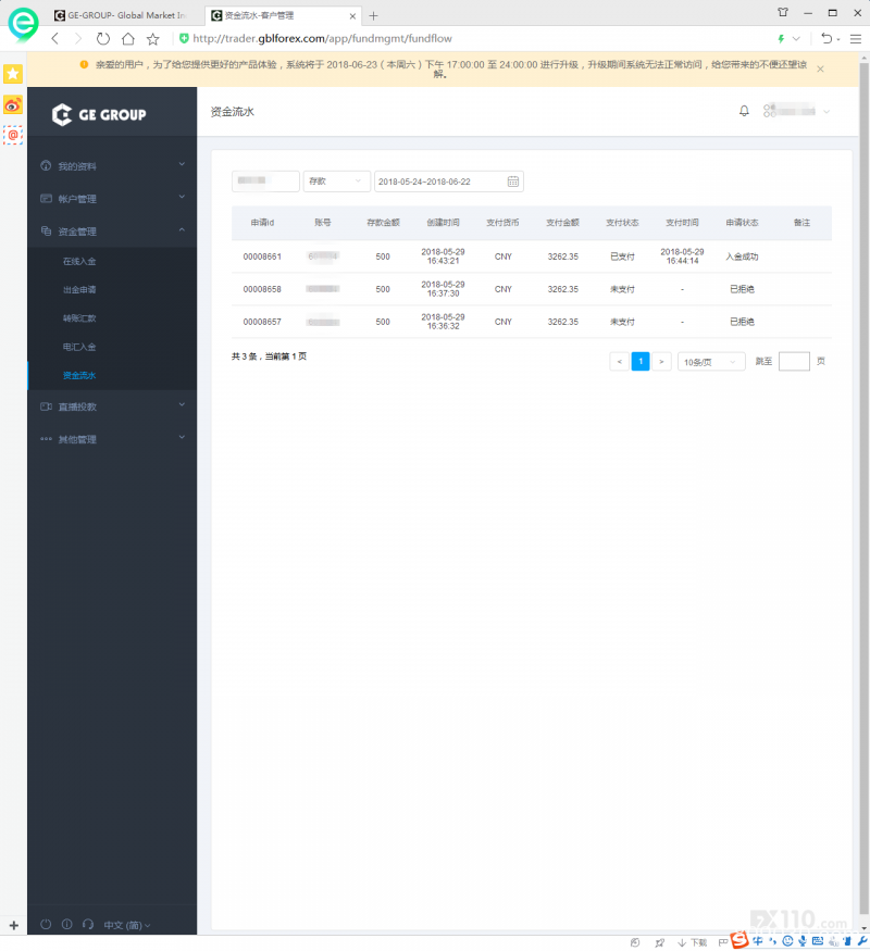 真的是碰到黑平台了,给大家曝光,也希望外汇110能够帮忙追资金!