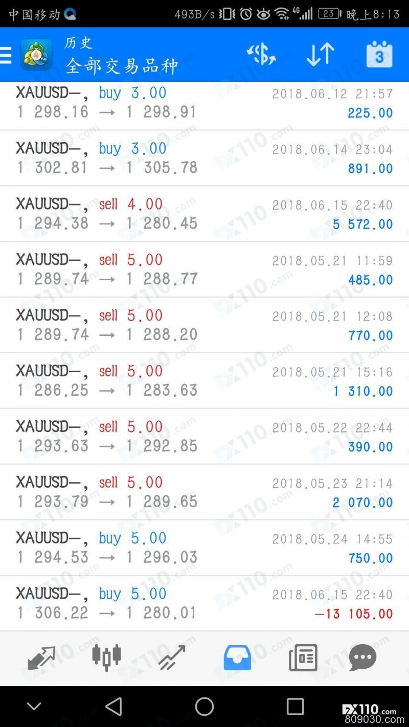 5月17日当天损失1996美元后,又有一些小的盈利,5月25日早上下6手多损失3234美元,晚上下6手空损失4476美元。后中间总会有小的盈利。6月1号下8手多单损失5242美元。他说是朋友来了,做了止损不记得了被强平了,后又继续拉回了一些。