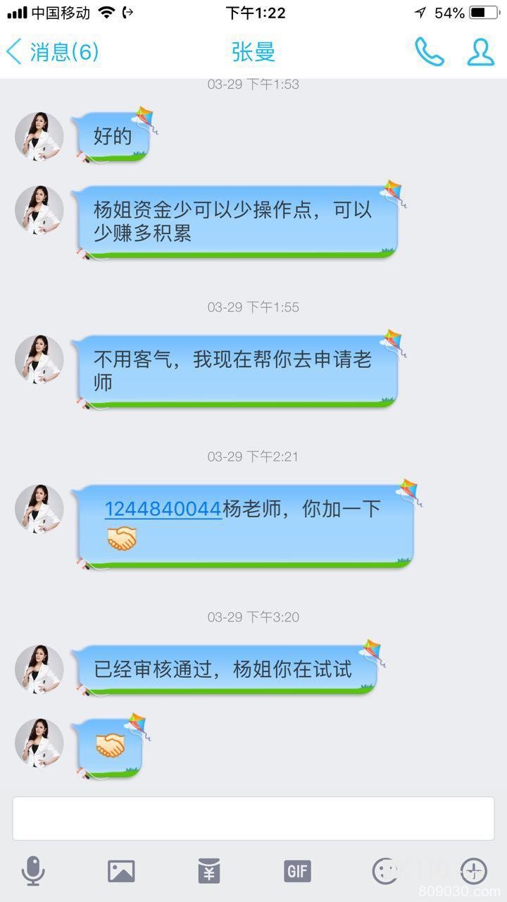 张曼一直私聊诱骗我开户入金,跟上其平台老师带单操作恒指。我一直对她说资金不够,但张曼反复私聊我,说资金小就小,仓位先做起来,保证赚钱。然后我就受骗上当开户入金了。接着她给我指定了一个姓杨的分析师带我做单,先是小赚利诱,之后连连亏损,一天内亏几万,接着又不断叫我加金,说资金大才能很快赚回来,保证我赚大钱,结果本金亏到所剩无几。现客服QQ已把我删掉,联系不上,平台也已不能出入金。
