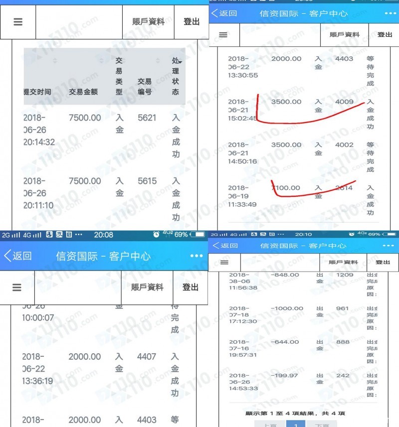 我入金共有五笔,信资国际这个平台是不是新西兰的都真假难辨,这些黑心的平台联合那些托手让我们上当受骗,使我损失严重,差点就家破人亡。希望大家擦亮双眼提高警惕,不要在上当受骗。