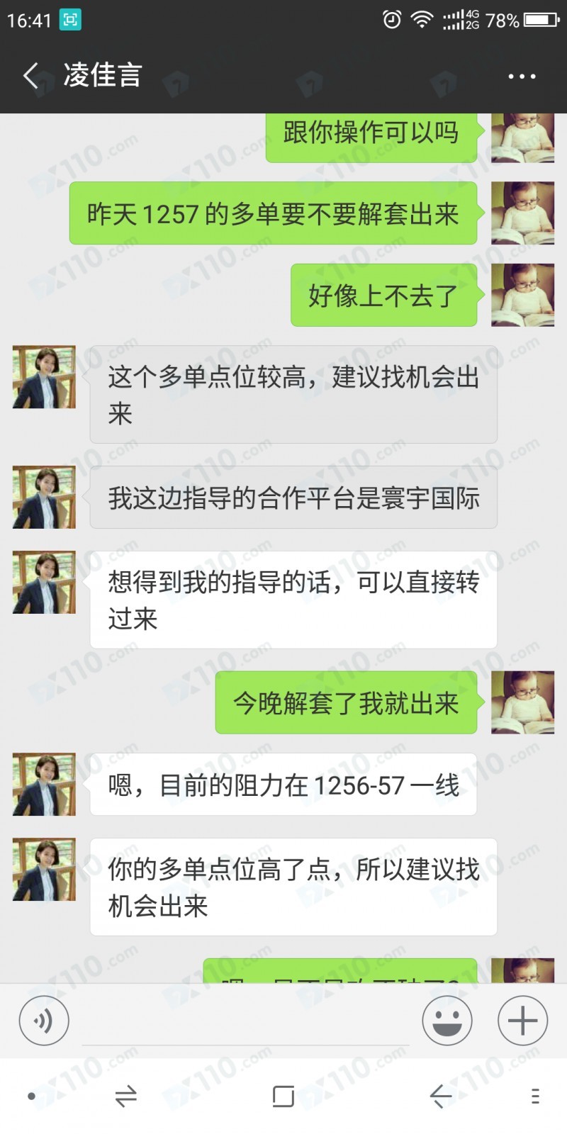 一开始在直播间跟着老师喊单操作,后面亏损我就叫平台客户换了老师还是亏损,最后我就撤出恒利金业平台,在网上看到了寰宇国际平台合作老师的软文(这个老师叫凌佳言不知道是真名还是网名就是),她说他们平台最低要5000美金才能激活所以我就借了3000美金加上自己的积蓄一共5000美金入场,我特意跟老师说了我的钱是借的要稳一点操作,一开始还稳没亏多少,后面她就说说要下大一点不然行情都会错过,但是后面一个月加上平台手续费就亏损了4000美金,而且关键时刻老师都联系不上电话也肯给我,之前告诉我她会盯盘,但是行情波动大就是联系不上、而且这个老师还没有一点抱歉的意思。