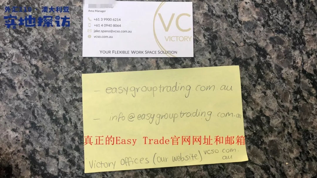 这里的工作人员告诉我们Easy Trade是家证券投资管理公司,不做外汇,和http://www.easytradingfx.com这家假冒Easy Trade没有任何关系,并手写了真正官网和邮箱地址给我们。
