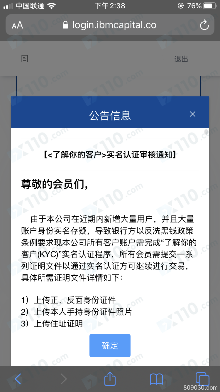 IBM平台回复说银行进行洗黑钱查账,需要KYC实名认证,但是自2月15日会员上传实名认证材料后,目前没有通过,目前想对IBM Capital Corporation平台进行解约,希望得到帮助。