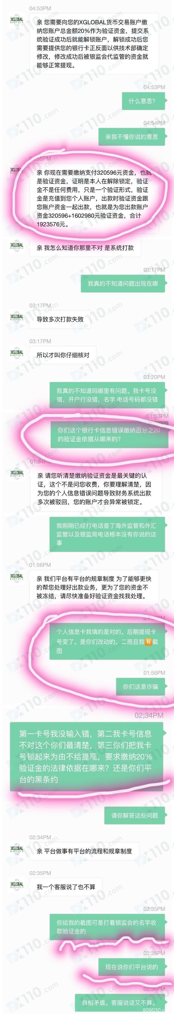 假冒X Global Markets平台随意改动客户银行卡信息,以银行信息与身份不符拒绝提现,160多万不给提现,诱导欺诈要求再次打入30万验证金,假冒X Global Markets平台的经营资质是否齐全,是否具备大陆交易资质,主管它们的监督部门是谁?希望通过平台曝光追回救命钱,也提醒大家注意!防止被骗!!!