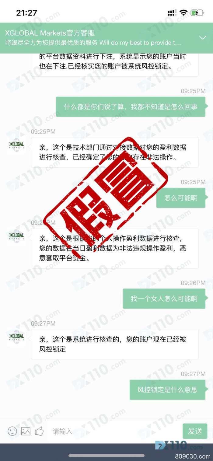 假冒APP:假冒X Global Markets平台诈骗,不让出金! 伦金 • 2020年7月22日 08:58 • 外汇曝光 • 阅读 1619 客服说什么账户异常操作被风控锁定要缴纳10万的风控资金才可以提现 客服说什么账户异常操作被风控锁定要缴纳10万的风控资金才可以提现 文章作者:伦金,如若转载,请注明出处:http://www.809030.com/eye/92194.html