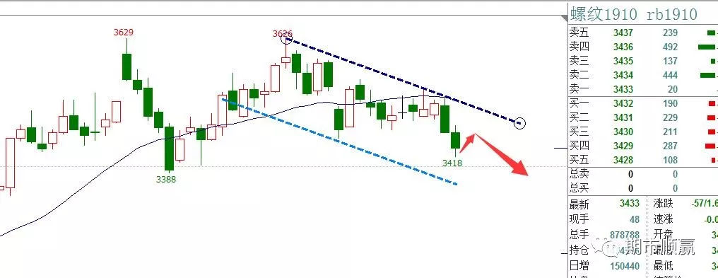 1、螺纹,日线下跌通道形成,反弹继续做空