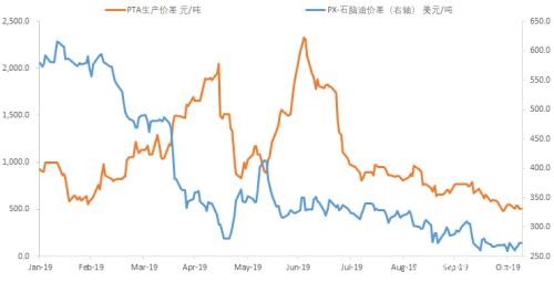 随着大量新装置的投产,检修的结束,PTA加工价差被一再压缩,目前PTA的盘面加工价差已经被压缩至500元/吨,按照以往的装置利润来看,PTA的加工利润在600元/吨附近,被压缩至500似乎是不太可能的事情。但是,随着恒力石化(行情600346,诊股)炼化一体化装置的投产,部分新增PTA装置的加工费可低至370元/吨附近,这就大大增加了PTA加工价差可被压缩的空间。