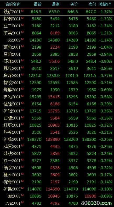 金融界期货11月27日讯 国内期货市场早盘收盘,商品期货涨跌分化,苯乙烯、菜油涨超1%,铁矿石、棕榈油、豆二、苹果、不锈钢跌超1%。