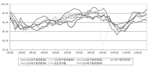 每年12月开始,北美冬季取暖用油消费高峰季到来。统计2013―2018年发现,每年12月至次年1月,取暖油裂解价差大概率会维持高位振荡的走势。除了2015年裂解价差走弱外,其余5年均表现偏强。当前取暖油裂解价差处于近6年均值附近。随着冬季来临后,将逐步迎来取暖油需求放量的小高潮。预计未来两个月,裂解价差将延续高位振荡的局面。