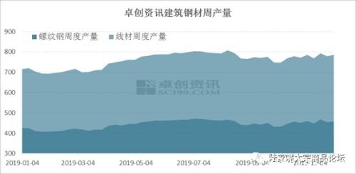 我们看一下钢材,钢材的供应量一尺维持相对高位,在三个产品中钢材的金融属性最强,更容易被经济、预期层面的因素所影响。钢材的生产在过去一年时间一直维持高位状态,2019年粗钢产量创历史记录的可能性极大,卓创资讯监测的建筑钢材产品产量一直处于相对高位。显然建筑钢材价格上涨并不是由于供应紧缺所致。