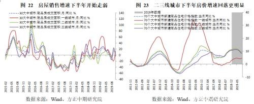 基建是另一个支撑投资需求的重要因素。基建投资增速曾在2018年出现明显回落之后,今年年初出现一定反弹,二季度开始再度转向平稳增长,总体来看稍弱于预期。我么依然强调基建的逻辑是“短期看资金、长期看项目”。随着地方债年内发行额度已经释放完毕,后期地方债提前下达的节奏将决定基建投资的走势,明年地方债额度将决定下一步基建投资的方向。我们认为在明年经济前高后低的基本假设下,下半年基建将有一定发力空间。此外受短期经济偏弱的影响,今年年末和明年年初基建仍是对冲经济走弱的主要手段。而长期来看,基建投资空间已经减小。未来主要发力点除部分高铁线路外,主要是支线铁路、公路和城市轨交、城市地下管网等。