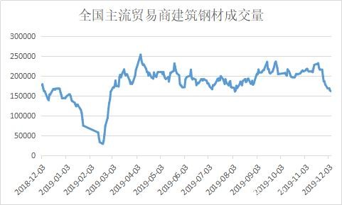 图5:全国主流贸易商建筑钢材成交量(万吨)