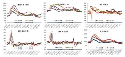 库存:本周总库存、厂库和社库分别为:1186万吨(+20万吨)、431万吨(+21万吨)和755万吨(-2万吨)。分品种看,螺纹累库17万吨,热轧去库1万吨。螺纹库存同比去年低19万吨,去库速度同比慢了49万吨。热轧库存同比低了33.5万吨,去库比去年同期慢了12万吨。