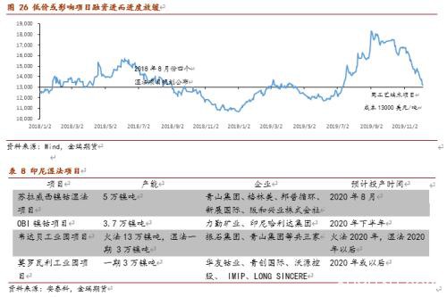 基于印尼当地镍矿价格计算的镍铁冶炼成本丰厚,且印尼在释放禁矿政策的同时,也提出对建设进度偏慢的企业进行处罚,利润及政策倒逼企业加快产线投建进度。但印尼反垄断机构将启动对镍冶炼商的调查,两大冶炼商巨头(青山&德龙)控制着印尼国内镍矿石市场的60%,亦操控国内价格,今年镍含量1.7%的镍矿石平均售价在每吨14美元,远低于今年政府设定的每吨30美元的基准,所以后期铁厂采购原料的成本将成倍增加,利润博弈下投产进度或出现放缓。需要进一步跟踪政策变化对中资企业投建进度的影响,中性预估下2020年印尼镍铁增量在14万金属吨左右。