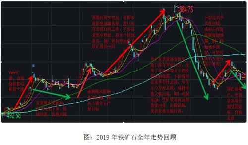 摘要 2019年是铁矿石价格大幅波动的一年,由于年初的巴西矿难和澳洲飓风的影响使得国际铁矿石市场的供应端出现了明显的缺口,受此预期影响铁矿石价格在上半年迅速攀升至120美元上方。从二季度开始,产能在年初受到影响的三大矿山纷纷开始努力复产,海外非主流矿和国内矿山受铁矿石价格快速上涨的刺激也纷纷加大了产量,供应紧缺的矛盾逐步得到缓解。进入3季度后,随着下游成材消费转入淡季,钢厂利润被严重压缩,加之环保限产的影响使得短期下游对铁矿的需求出现萎缩,港口库存开始累积,铁矿价格从高位迅速回落,进入9月后,整体走势开始受钢厂补库节奏和环保限产因素驱动,转入震荡整理。