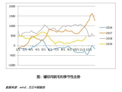 总体看,2019全年成材受整体产量压制和原料端价格大幅上涨的挤压,利润重心同比出现明显下降。以螺纹钢为例,吨钢毛利全年平均值在340元左右,相比于去年800元/吨左右的年度平均毛利下降幅度超过57%。从盈利钢厂占比来看,全年平均值为77.66%,相较于去年的83.02%也有明显下滑。从成材价格看,今年整体尚可,二季度螺纹价格也曾触及过4000元/吨的高位,螺纹吨钢毛利润在4月末达到年内的最高值700元/吨附近,而后开始急转直下,至8月已被压缩至不足百元。利润收缩如此明显一方面是源于原料端铁矿石价格在二季度的大涨,另一方面是成材产量增幅超预期,使得下游需求端难以匹配其增速,这从5月粗钢产量创出历史新高可以得到印证。进入3季度,电炉生产成本对整体行业利润的支撑作用开始显现,由于废钢价格的坚挺使得电炉的产量受到压制,成材供应端压力逐渐减小,待9月进入传统下游消费旺季后钢厂利润开始逐步恢复。
