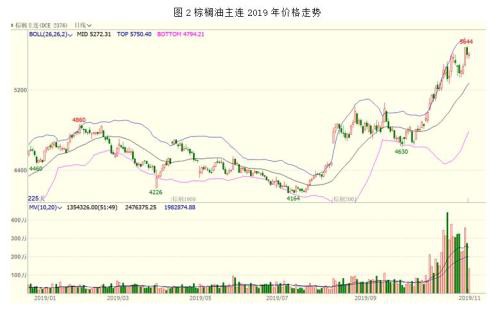2019年,国内油脂价格经历了先抑后扬的过程,上半年整体价格偏弱,仍在弱势震荡的格局中缓慢筑底,下半年受多方面因素影响开始逐渐升温,最后在棕榈油行情的引燃下整体暴发。