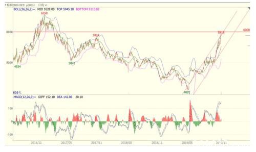 远期豆油价格有望持续上涨,从技术上来看,豆油2005价格短期阻力位在6500元/吨,支撑位在6300元/吨,长期支撑位在6000元/吨,如果能够突破6500元/吨,则有希望向上挑战7000元/吨一线。