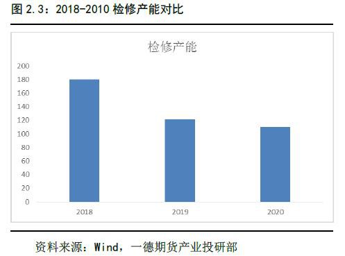 从目前已经公布的检修情况来看,2020年检修并不是特别多。目前公布的计划看,损失量不足100万吨,加上计划外的检修可能会和2019年持平或略低。2019年检修损失按照卓创统计在121万吨左右,2020年给予115万吨左右估算。