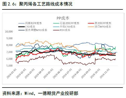 通过上述分析可以知道,聚丙烯的景气周期面临结束,供求格局在2020年迎来拐点,节奏上和聚乙烯一样,主要是产能投放和补库存的影响。预计聚丙烯价格的下边界将靠近外购煤路线的成本,大概在6800-7000。上边界根据波动率和下游承受力预计在8200-8500。