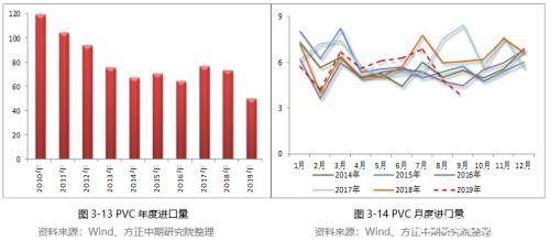 2019年PVC行业发展较为健康,市场供需格局处于弱平衡状态,货源供应情况整体偏紧。虽然前期社会库存大幅累积,但去库存效果较为理想,已经低于2018年同期水平。货源持续紧张情况下,刚性需求稳定,PVC供需有望进一步收紧。虽然四季度仍有装置计划投产,但实际投产进度预计缓慢,产能释放有限,供需矛盾并不会明显。随着反倾销税的取消,加之国外PVC市场价格偏低,进口货源或逐步流向国内抢占市场,加之产能扩张,而需求量提升存在困难,PVC供应或略显过剩。