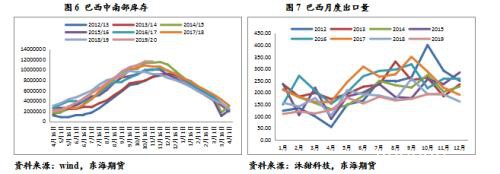 截至2019年10月底巴西中南部糖库存同比增加27.4%,达到1161万吨,库存水平持续处于近年同期的最高水平。在库存压力,以及雷亚尔汇率暴跌的刺激下,10、11月巴西糖出口开始放量,达到榨季峰值。不过,本榨季截至11月巴西糖出口量仍然同比减少8.41%,仅为1366.42万吨,因此,后续仍需要关注巴西收榨后库存的消化情况。