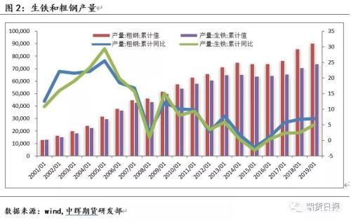 产能扩张和“一厂一策”的环保政策推动产量显著增长,包括粗钢和生铁产量的增长。数据显示,2019年前11个月,粗钢累计产量为9.04亿吨,同比增长7.0%,增速较上年同期加快0.3%;生铁累计产量为7.39亿吨,同比增长5.1%,增速较上年同期加快2.7%。而环保政策较为严格执行“一厂一策”政策,使得2019年高炉开工率均值为66.37%,与2018年基本持平,保证了钢铁产能的释放,这着重表现生铁产量的增长方面。
