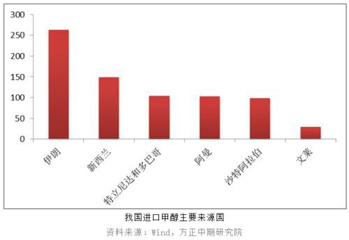 我国进口的甲醇主要来源于中东地区,包括伊朗、沙特等国家。统计数据显示,截至2019年11月,我国甲醇累计进口970.24万吨,其中从伊朗进口的甲醇达到263.79万吨,占比为27.19%,位列首位。从当前美伊冲突发展趋势来看,对甲醇进口尚未产生实质性影响,但引发市场担忧货源供应缩减以及海运航线受到影响,情绪面对市场影响更大。
