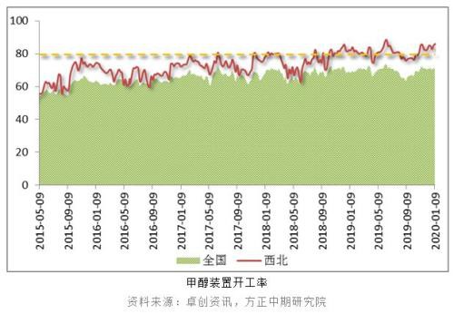 截至1月9日,甲醇整体装置开工负荷为72.25%,环比上涨1.05%;西北地区的开工负荷为86.29%,环比上涨0.92%。西北地区部分装置负荷提升,山东地区部分装置稳定运行,甲醇生产装置运行负荷继续回升。停车的天然气装置近期存在重启计划,甲醇开工水平有望进一步提高,货源供应维持充裕状态,供应端仍存在压力。