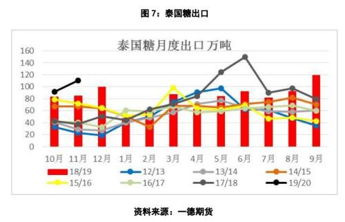 泰国,当前正处于开榨前期,截至12月底有57家糖厂开榨,同比增加2家。累计压榨甘蔗2300.8万吨,同比减少20.84%,产糖228.17万吨,同比减少18.64%。阶段性的减产减缓了当前的国际市场供应压力,而其年度的减产预期也是新榨季牛市的重要支撑之一。泰国对国际糖价的影响喜忧参半,有减产的支撑,也有出口增加的压力,阶段性的出口持续处于历史高位,其减产也没有改变其年度出口依然维持历史记录的千万吨级别的事实,其出口不像印度一样上升到国家政策强制补贴就能实现的正常贸易出口,是糖价目前无法有效逾越14美分,也是年度预期16-17美分牛市上方空间压力的主要担忧。