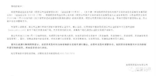记者注意到,上述多家期货公司声明均提及各期货交易所于2019年11月20日发布的《关于落实穿透式监管相关要求的通知》的相关要求(详细报道见本报公众号1月9日报道)。并有多家公司自声明中表明,经排查,上海文华财经资讯股份有限公司旗下交易软件(包括但不限于文华赢顺、文华赢智、文华随身行)是否符合监管要求存在不确定性,截至目前该软件供应商未能提供符合穿透式监管要求的整改方案。