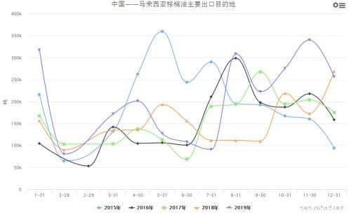 分目的地出口数据中,近几个月马来对印度棕榈油出口持续下滑至较低水平。但目前印度油脂总库存已经降至多年最低,这对后期印度市场油脂进口有一定支撑作用。同时从2020年1月1号印度对毛棕榈油和精炼棕榈油关税进行了下调,但毛豆油进口关税保持不变,从油脂进口结构上将支撑其棕榈油进口。