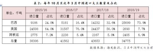 在中美贸易冲突之前,每年的10月至次年3月份,中国的进口量近60-80%均是来源于美国,而2018/2019年美豆进口量大肆减少,此阶段进口南美大豆数量高达73%,2019年美豆出口销售开局较去年同期好转,主要是因为今年中国放开部分大豆压榨企业进口配额,不过在中美贸易第一阶段协议签署更多细节落地前,美豆出口销售难有较大的放量,尤其是在明年3月份南美早豆上市开启之后,美豆市场庞大的库存量将给大豆市场带来压力。